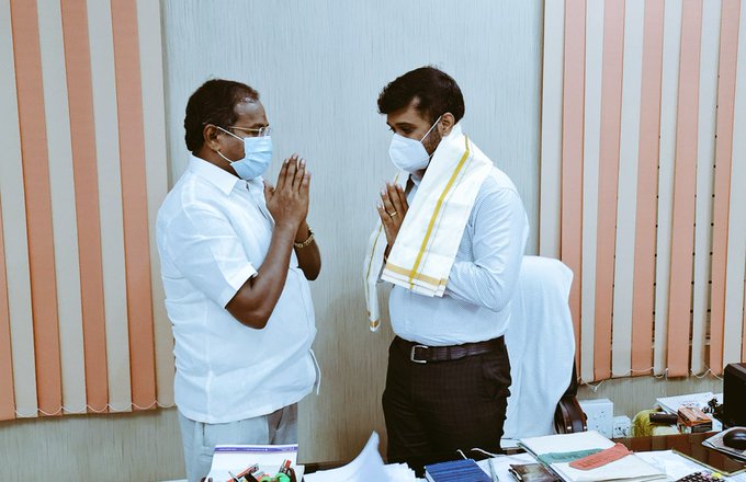 இன்று உலக மருத்துவர் தினத்தை முன்னிட்டு சேலம் மாநகராட்சியில் கொரானா எதிர்ப்பு பணியினை மிகச் சிறப்பாக தலைமை தாங்கி நடத்தி கொரோனா பரவலை குறைத்த மாநகராட்சி தலைமை மருத்துவ அதிகாரி டாக்டர்.பார்த்திபன் அவர்களை நேரில் சந்தித்து சேலம் மேற்கு சட்டமன்ற உறுப்பினர் அருள் மருத்துவர் தின வாழ்த்துகளை தெரிவித்துக்கொண்டார் …