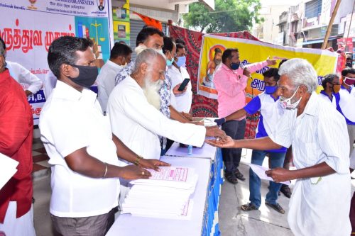 13.06.2020 சேலம் மாநகரம் பொன்னம்மாபேட்டை ரயில்வே இரண்டாவது கேட் அருகில் மக்கள் சட்ட உரிமைகள் கழகம், புதிய வெளிச்சம் சேவை அறக்கட்டளை, விசுவ ஹிந்து பரிசத் இணைந்து 5000 குடும்பங்களுக்கு ஹோமியோபதி எதிர்ப்புச் சத்து மாத்திரை சமூக இடைவெளி பின்பற்றி முக கவசம் அணிந்து வழங்கப்பட்டது. இந்நிகழ்வில் புதிய வெளிச்சம் அறக்கட்டளை தலைவர் ஜீவி தனபால் தலைமை தாங்கினார். மக்கள் சட்ட உரிமைகள் கழகம் சார்பாக மாநில நிர்வாக குழு அமைப்பாளர் கே தேவராஜ், மாநில இளைஞரணி நிர்வாகச் செயலாளர் #ஆர்_வி_பாபு, சேலம் மாவட்ட ஆன்மீக அணி அமைப்பாளர் சிட்டிபாபு, மாநகர மகளிர் அணி அமைப்பாளர் ரேஷ்மா, அகழி அறக்கட்டளை தியாகு, அதிகாரப்பட்டி பிரகாஸ், உடையாப்பட்டி அஸ்ரப் ஆகியோர் முன்னிலை வகித்தனர். கௌரவ அழைப்பாளராக மருத்துவர் R.அன்பரசி BHMS MD(AM) கலந்து கொண்டார். சிறப்பு அழைப்பாளராக விஷ்வ ஹிந்து பரிஷத் மாவட்ட மண்டல கோட்ட அமைப்பாளர்கள் கலந்து கொண்டார்கள். அனைவருக்கும் VHP மாவட்ட துணைத்தலைவர் அங்குராஜ் அவர்கள் அறுசுவை விருந்து வழங்கினார். வருகை புரிந்த முக்கிய நிர்வாகிகள் பங்கு பெற்று வாழ்த்துக்கள் தெரிவித்தனர். புதிய வெளிச்சம் சேவை அறக்கட்டளை நிர்வாகிகள் அனைத்து பொது மக்களிடமும் முக கவசம், சமூக இடைவெளி மற்றும் ஹோமியோபதி மாத்திரையை உபயோகிக்கும் முறையை மிகச்சிறப்பாக எடுத்து கூறி விழிப்புணர்வு ஏற்படுத்தினார். அப்பகுதி மக்களிடையே சிறப்பான வரவேற்பு கிடைத்தது. விழா இனிதே நிறைவடைந்தது.
