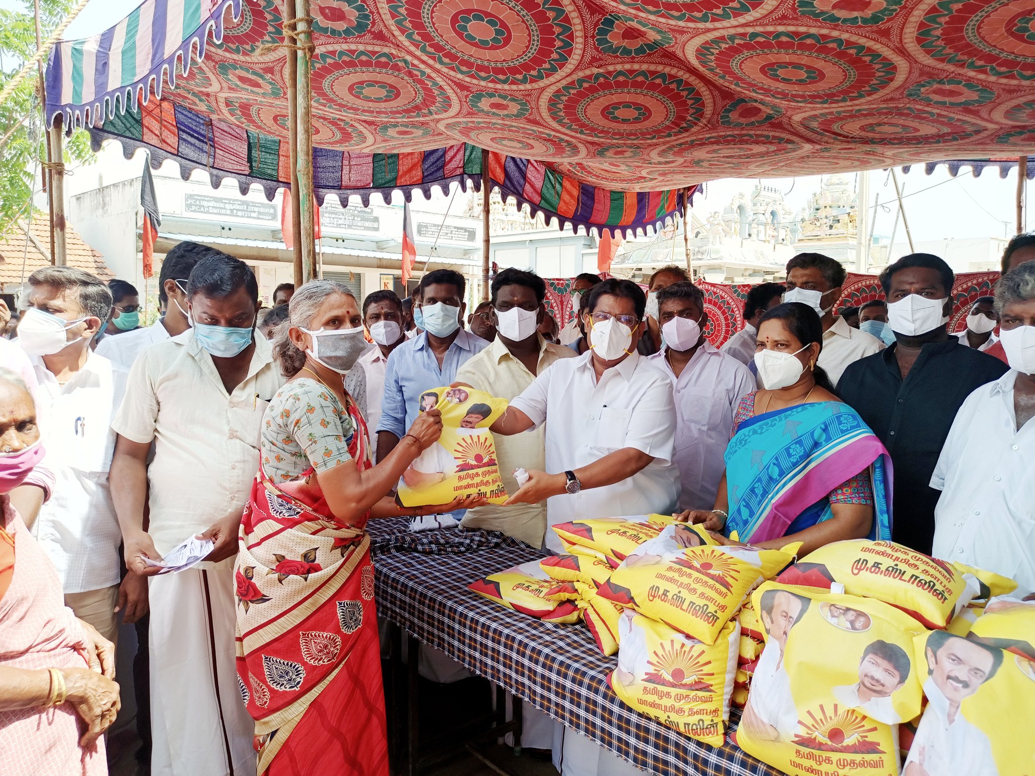 குடும்ப அட்டைதாரர்களுக்கு 5கிலோ அரிசி வழங்கும் நிகழ்வு