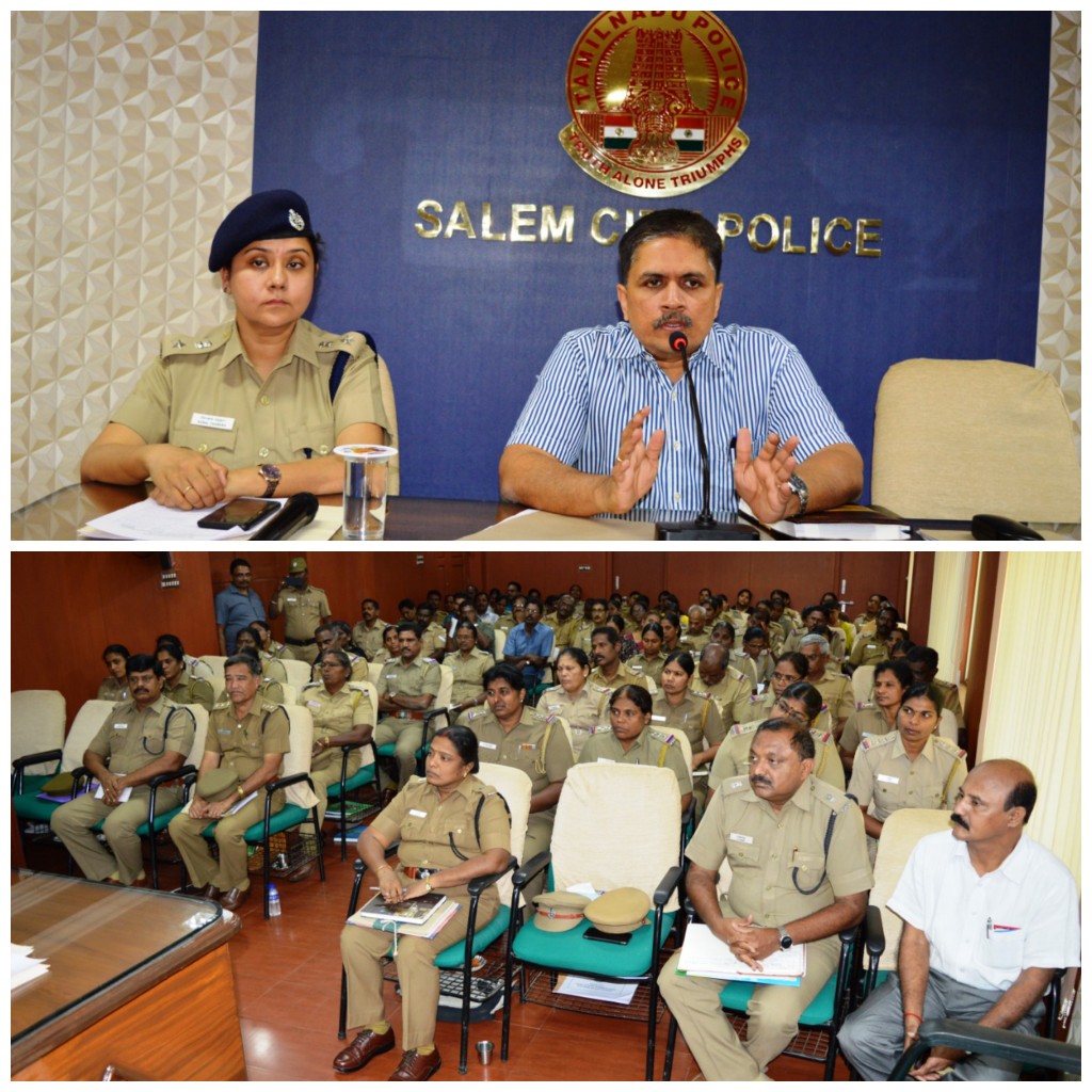 19/03/ 2019 ஆம் தேதி சேலம் மாநகர காவல் அலுவலகத்தில் உள்ள கலந்தாய்வு கூட்டத்தில் சேலம் மாநகரம், சேலம், நாமக்கல், தர்மபுரி மற்றும் கிருஷ்ணகிரி மாவட்டங்களை சேர்ந்த சுமார் 100 காவல் ஆளிநர்கள் கலந்து கொண்ட கலந்தாய்வு கூட்டத்தில் பெண்கள் மற்றும் குழந்தைகளுக்கு எதிரான குற்றங்கள் பிரிவு காவல் கண்காணிப்பாளர் திருமதி. சோனல் சந்திரா IPS அவர்கள் பங்கேற்று பெண்கள் மற்றும் குழந்தைகளுக்கு எதிரான குற்றங்கள் குறித்த வழக்குகளை கையாள்வது எப்படி என்பது குறித்து ஆலோசனைகள் வழங்கினார். இந்நிகழ்ச்சியில் உரையாற்றிய மாநகர காவல் ஆணையாளர் திரு.K.சங்கர் IPS அவர்கள் பெண்கள் மற்றும் குழந்தைகளுக்கு எதிரான குற்ற வழக்குகளில் காவல்துறையினர் கவனமுடனும் விரைந்து நடவடிக்கை எடுக்க வேண்டும். பாதிக்கப்பட்ட பெண்கள் மற்றும் குழந்தைகளின் அடையாளங்களை நீதிமன்றம் தவிர பொது இடங்களில் தெரிவிக்க கூடாது. அறிவியல் பூர்வமான வழக்கினை நிரூபிக்கத் தேவையான ஆதாரங்களை சேகரிக்க வேண்டும் என்று அறிவுரை வழங்கினார்.